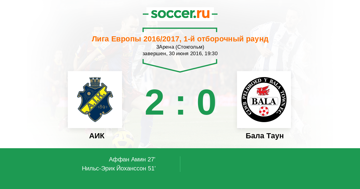 Протокол матча АИК против Бала Таун
