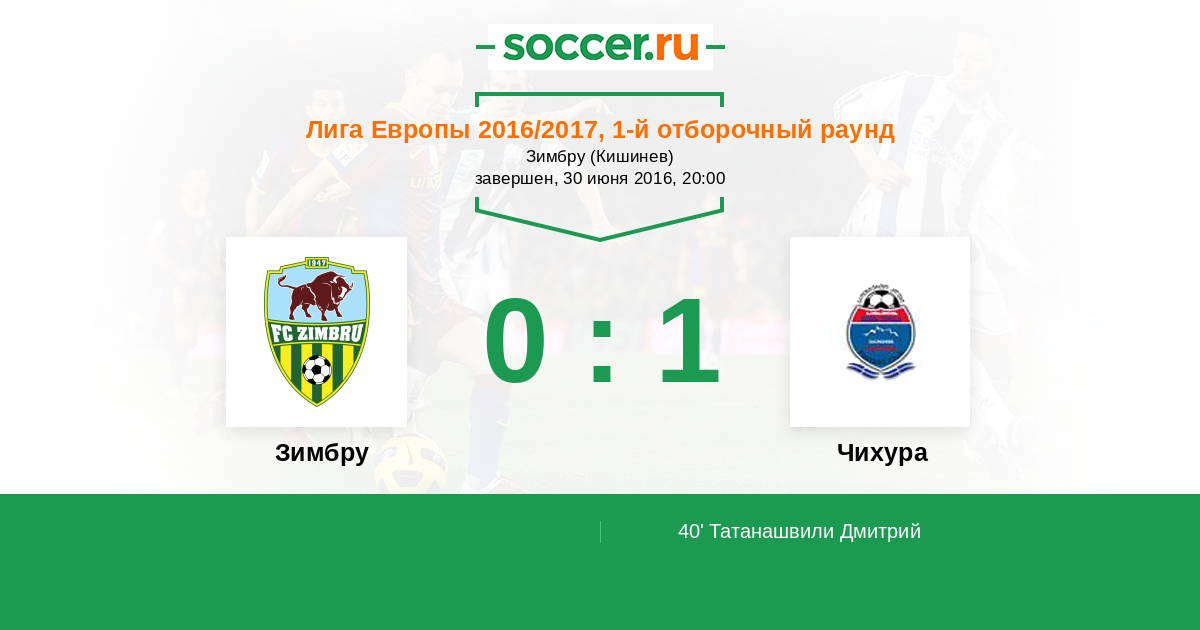 Протокол матча Зимбру против Чихура