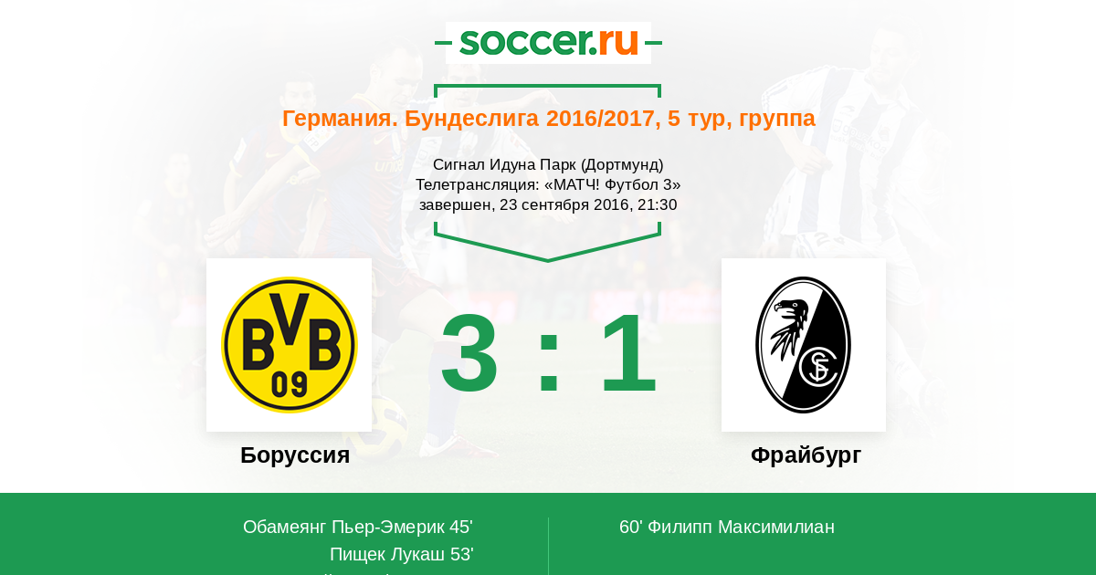 Протокол матча Боруссия против Фрайбург