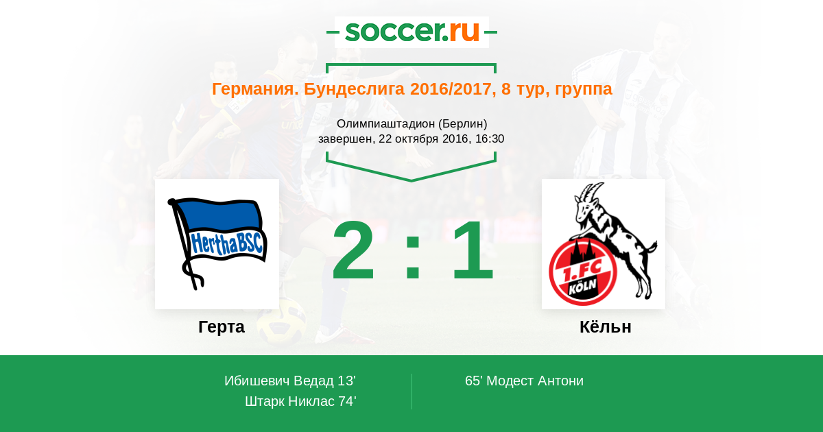 Протокол матча Герта против Кёльн