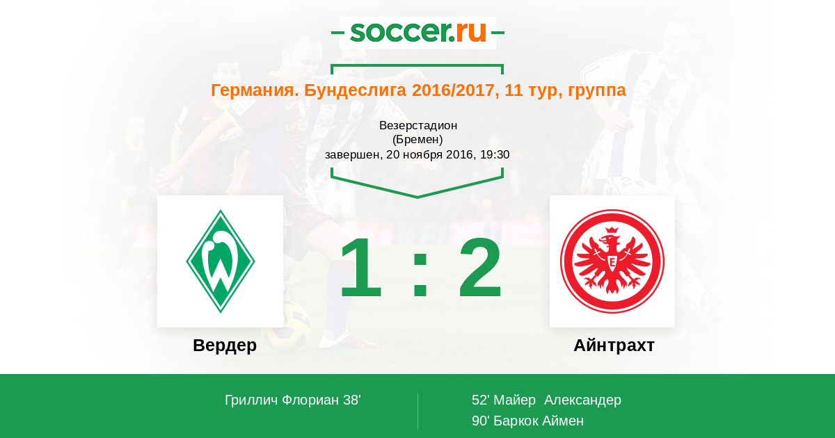 Протокол матча Вердер против Айнтрахт