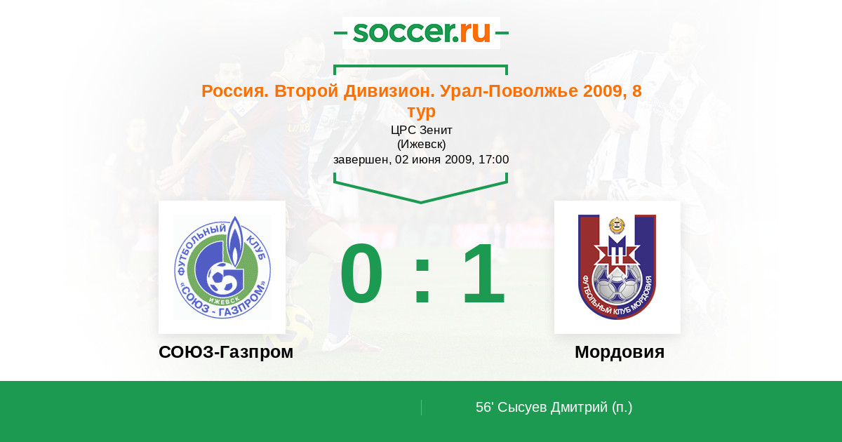 Протокол матча СОЮЗ-Газпром против Мордовия