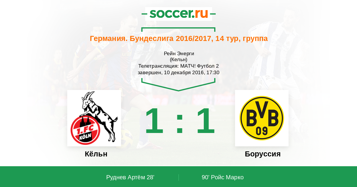 Протокол матча Кёльн против Боруссия