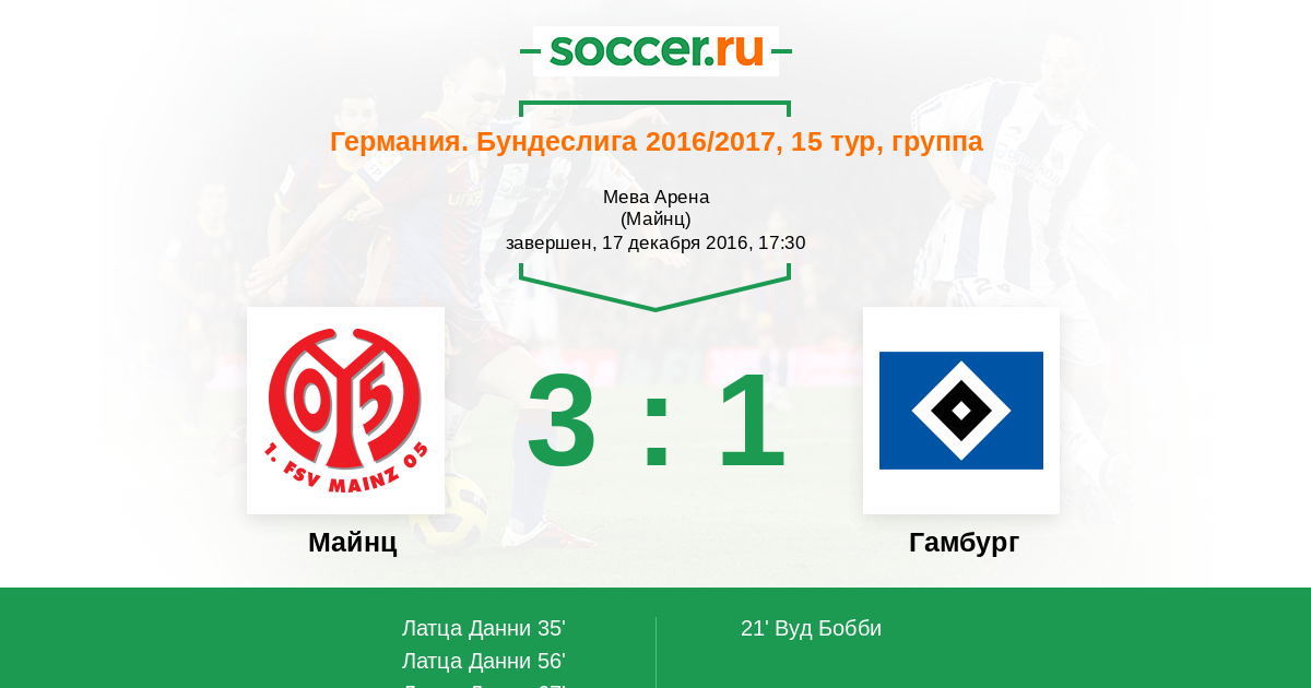 Протокол матча Майнц против Гамбург