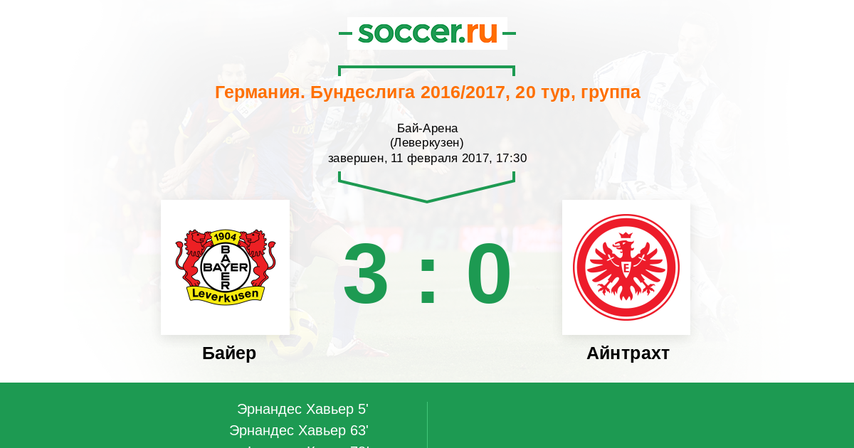 Протокол матча Байер против Айнтрахт