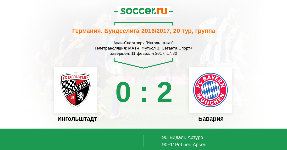 Протокол матча Ингольштадт против Бавария