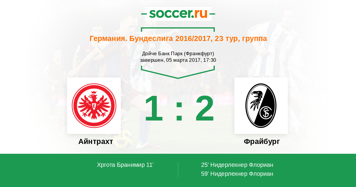 Протокол матча Айнтрахт против Фрайбург