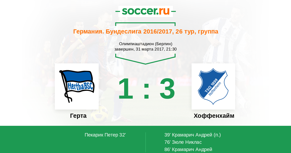 Протокол матча Герта против Хоффенхайм