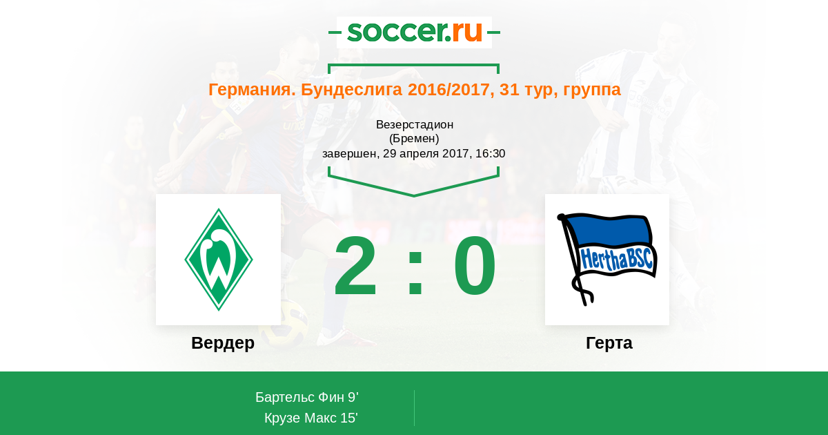 Протокол матча Вердер против Герта