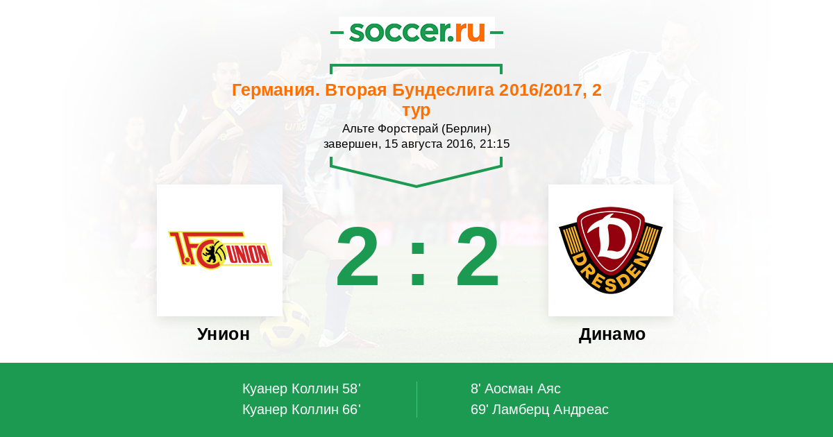 Протокол матча Унион против Динамо