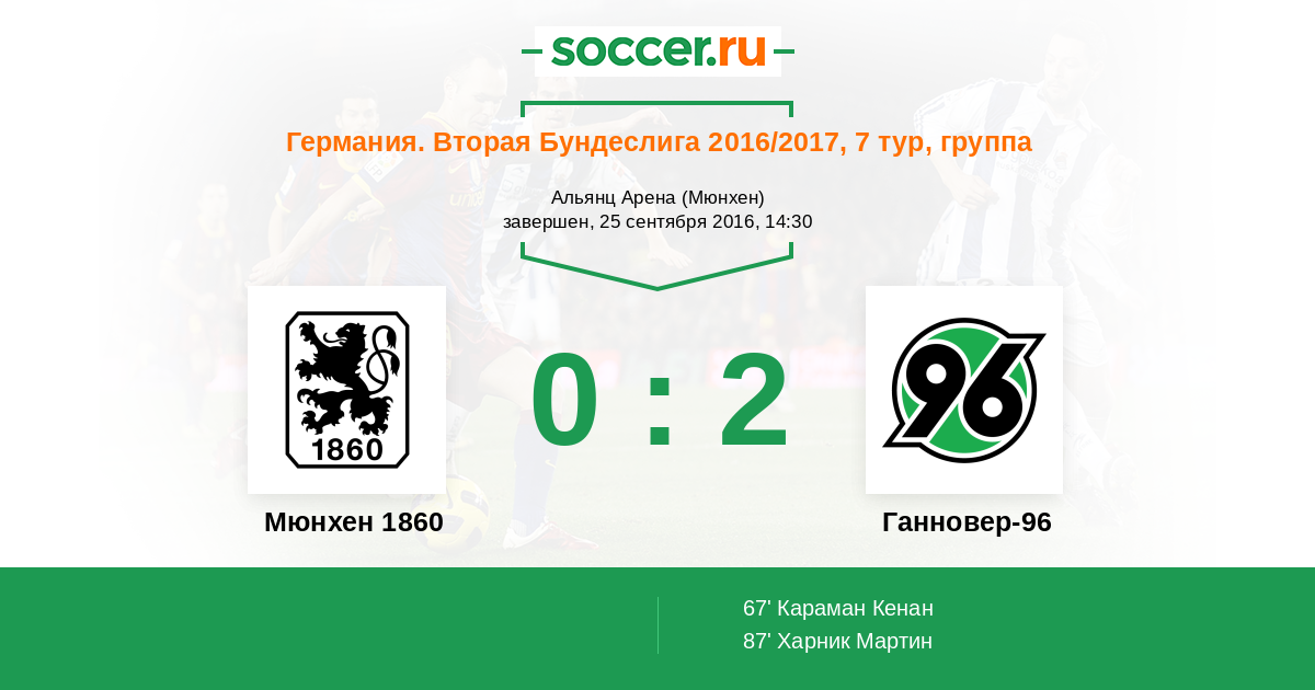 Протокол матча Мюнхен 1860 против Ганновер-96