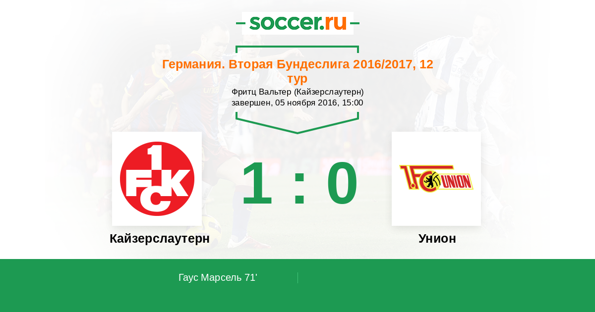 Протокол матча Кайзерслаутерн против Унион