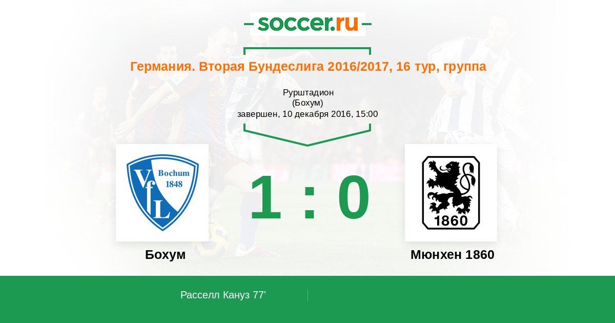 Протокол матча Бохум против Мюнхен 1860