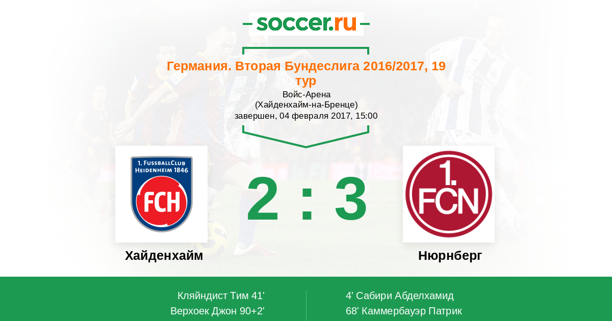Протокол матча Хайденхайм против Нюрнберг