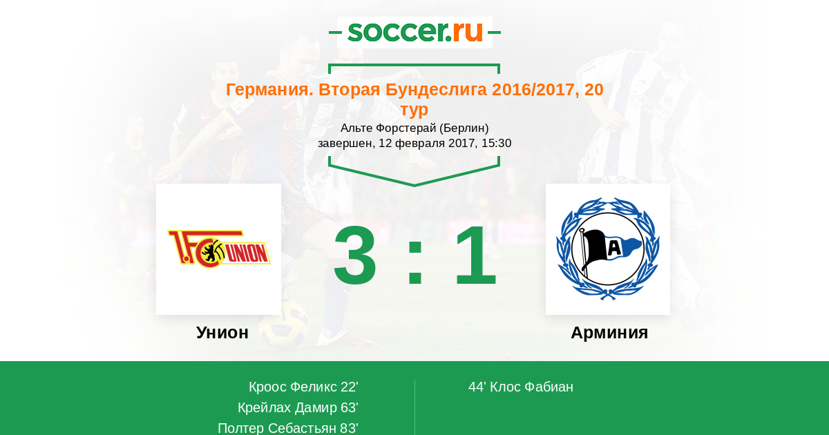 Протокол матча Унион против Арминия