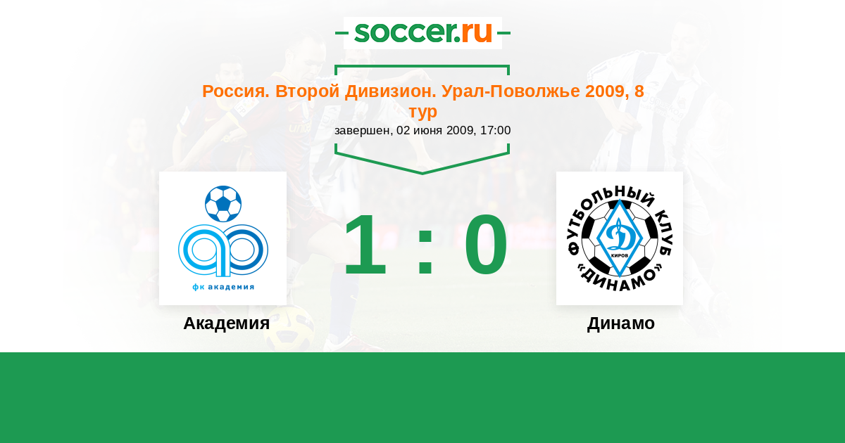 Россия. Вторая лига. Группа 4 10.09.2009 Динамо Киров Логотип футбольный клуб Динамо Киров 2:1 Логотип футбольный клуб Академия (Тольятти) Академия