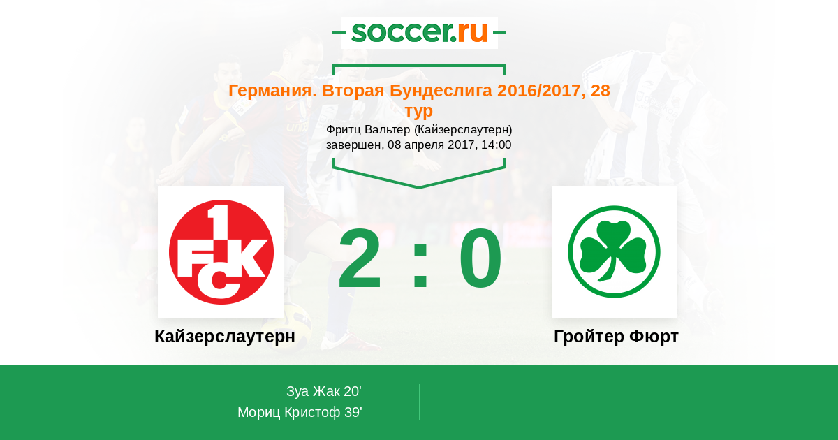 Протокол матча Кайзерслаутерн против Гройтер Фюрт