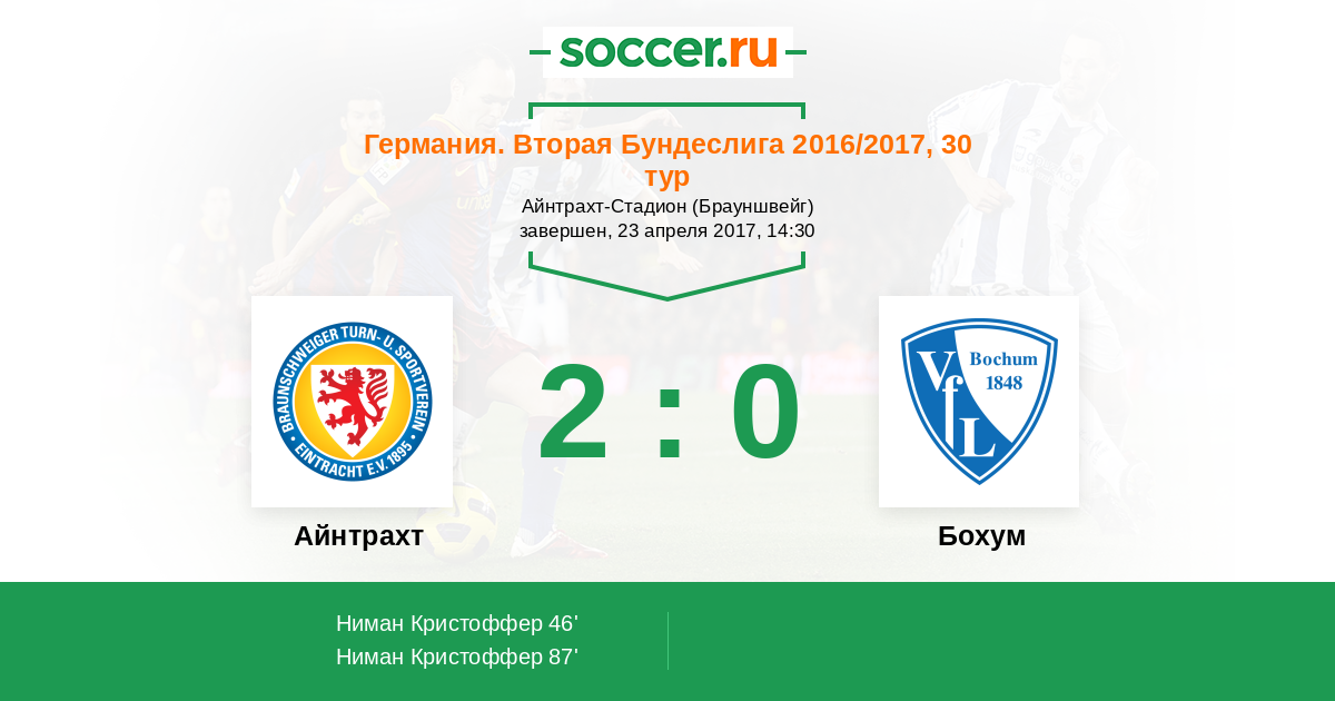 Протокол матча Айнтрахт против Бохум