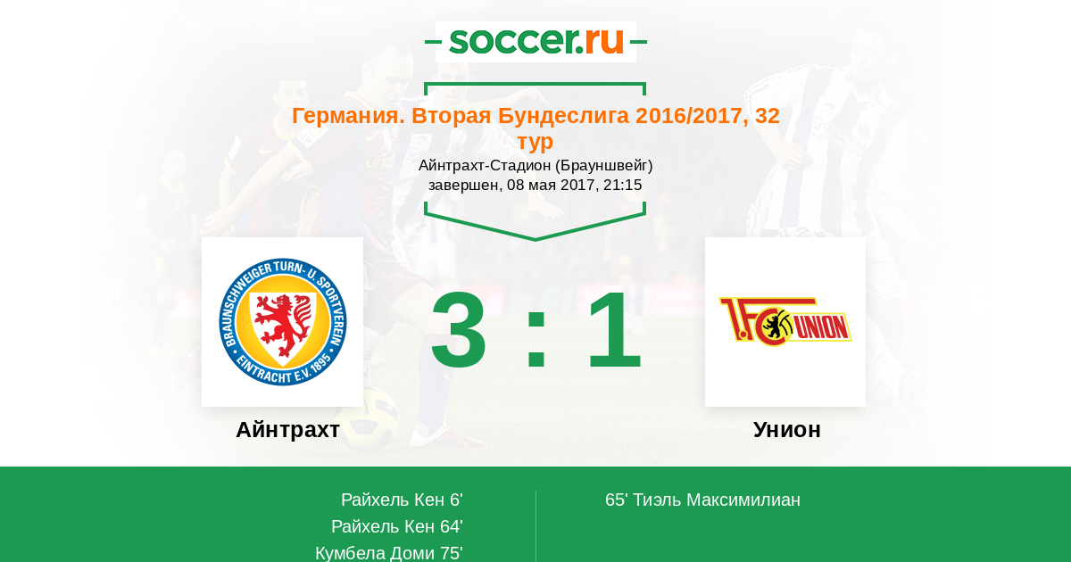 Протокол матча Айнтрахт против Унион