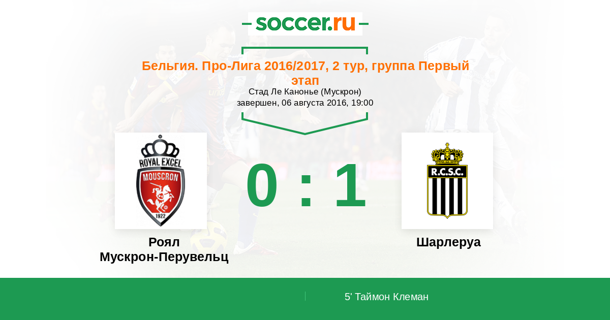 Протокол матча Роял Мускрон-Перувельц против Шарлеруа