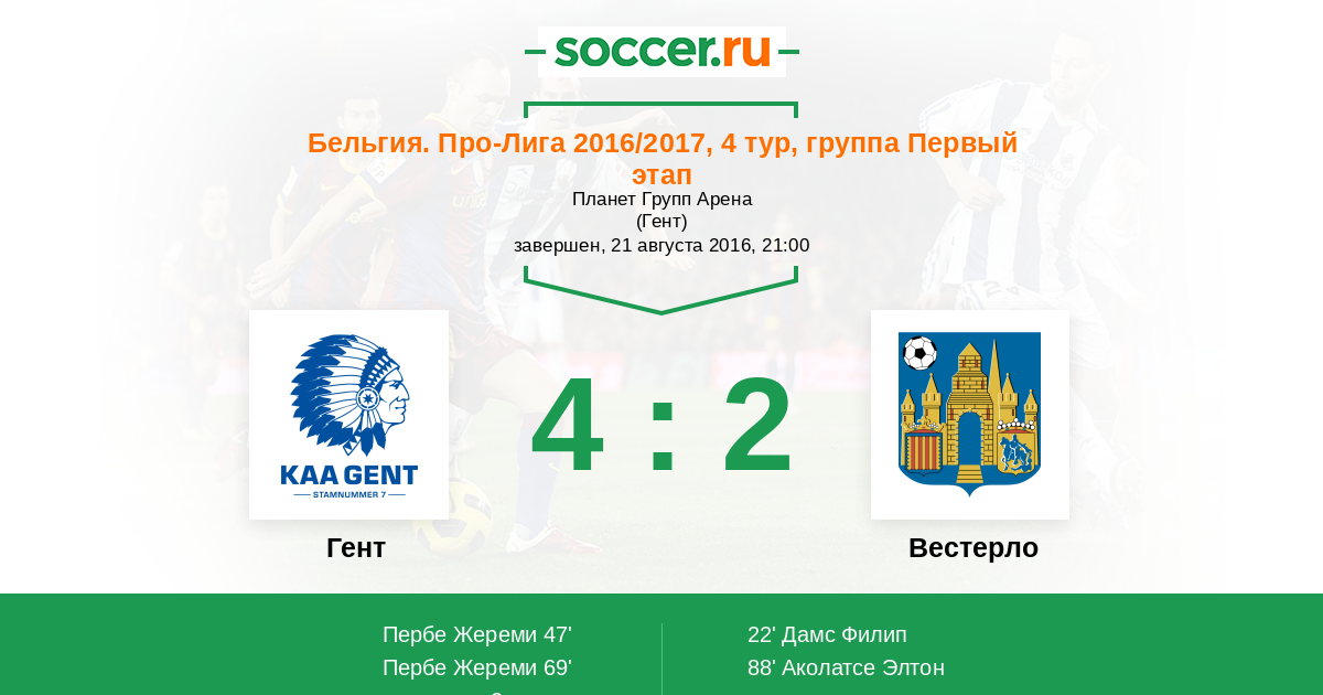 Протокол матча Гент против Вестерло