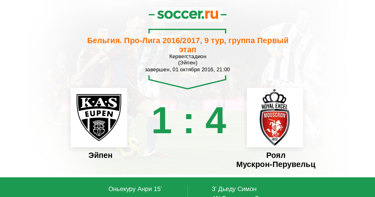 Протокол матча Эйпен против Роял Мускрон-Перувельц