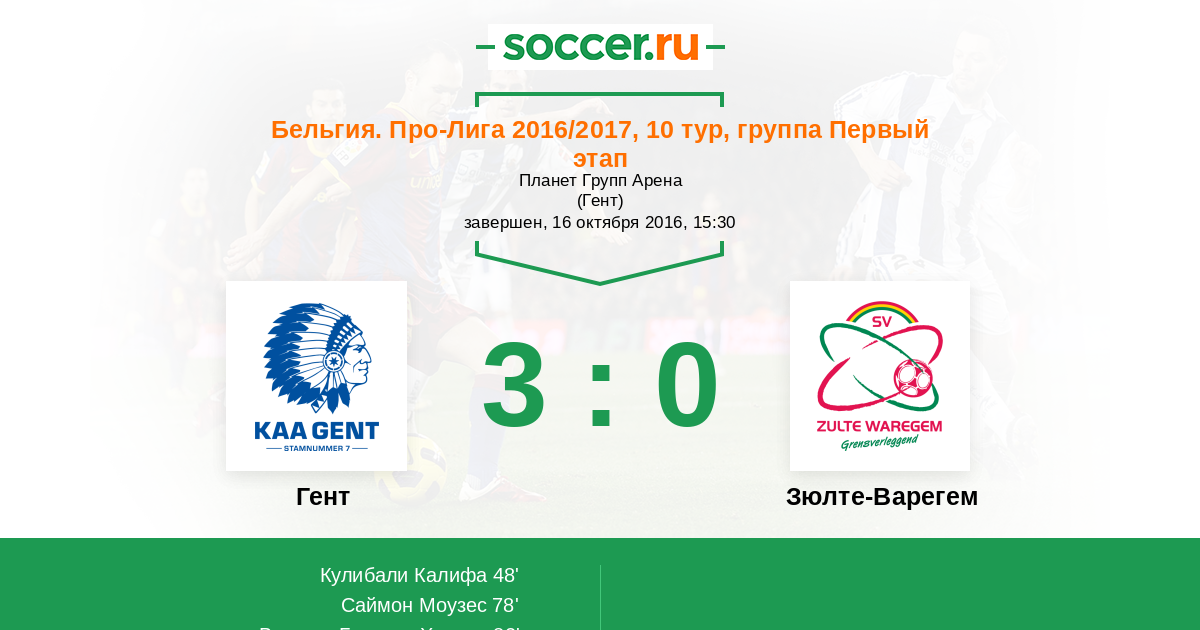 78' (2:0) Саймон Моузес (27) (Ван дер Брюгген Ханнес (17))