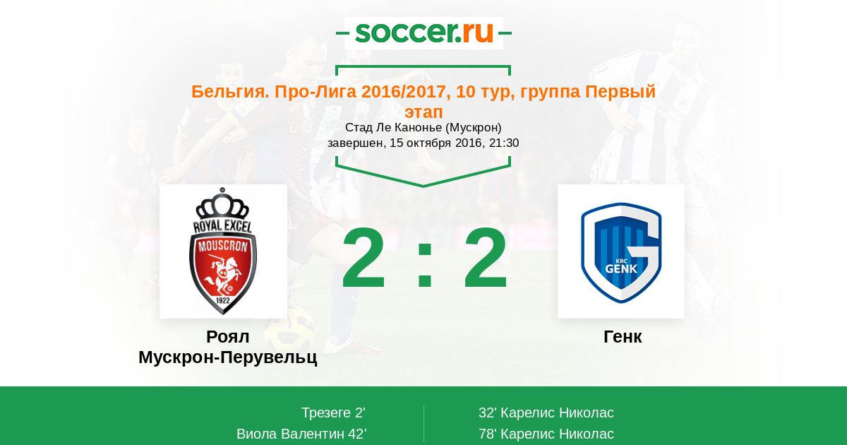 Протокол матча Роял Мускрон-Перувельц против Генк