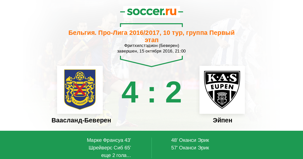 Протокол матча Ваасланд-Беверен против Эйпен
