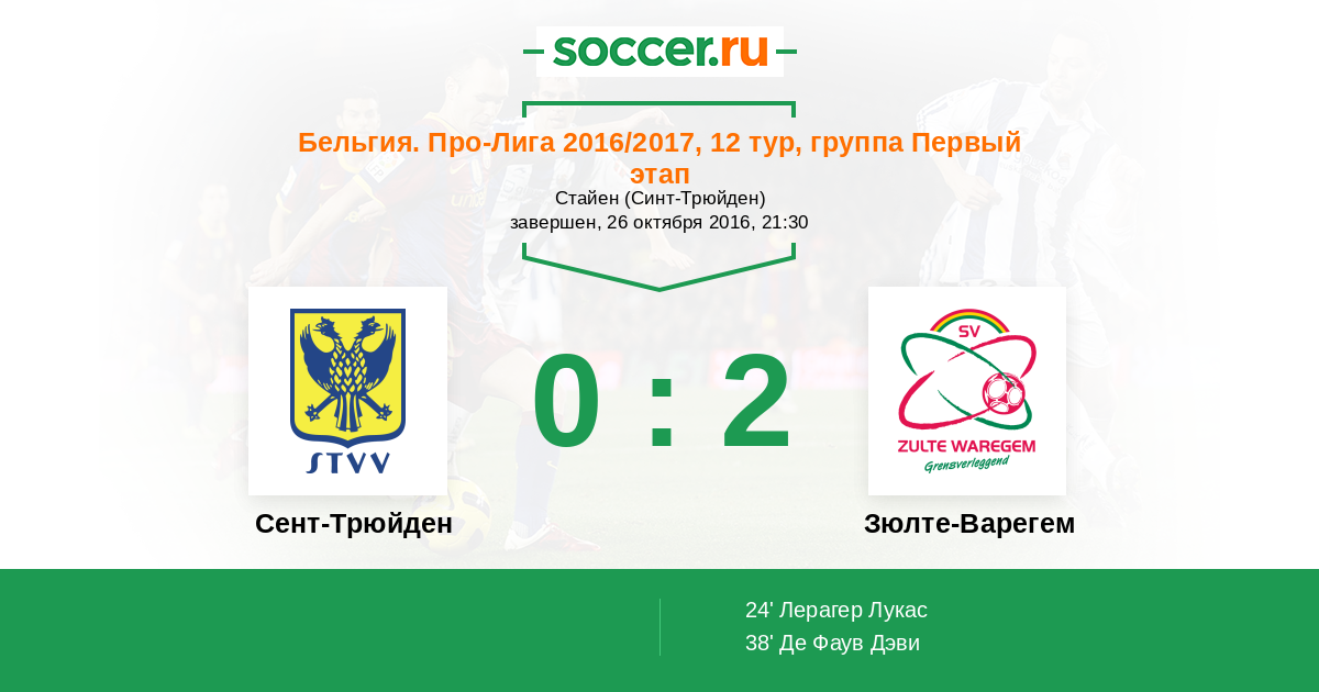 Протокол матча Сент-Трюйден против Зюлте-Варегем