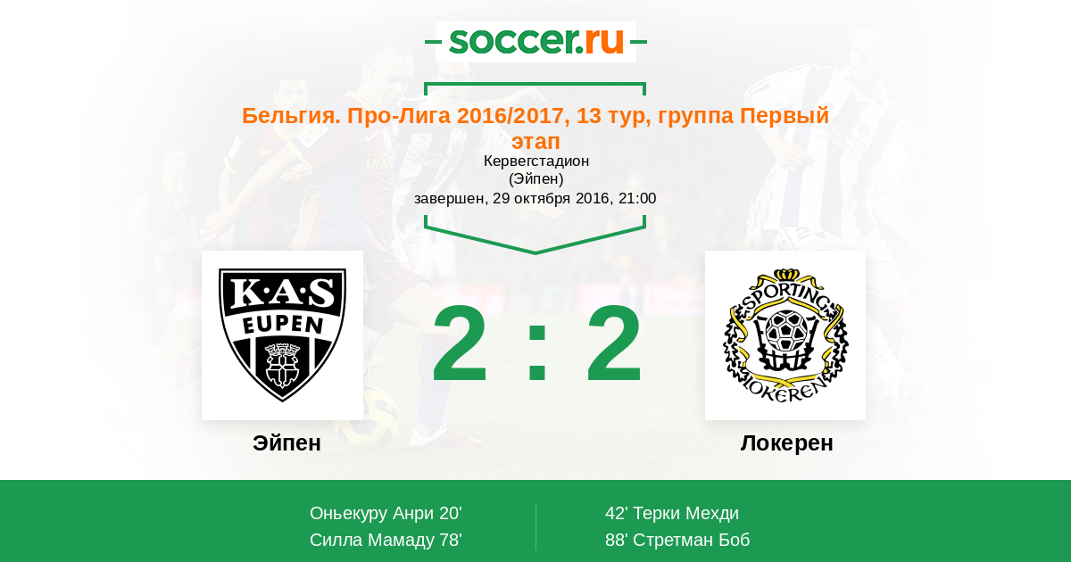42' (1:1) Терки Мехди (14) (Де Риддер Стив (22))