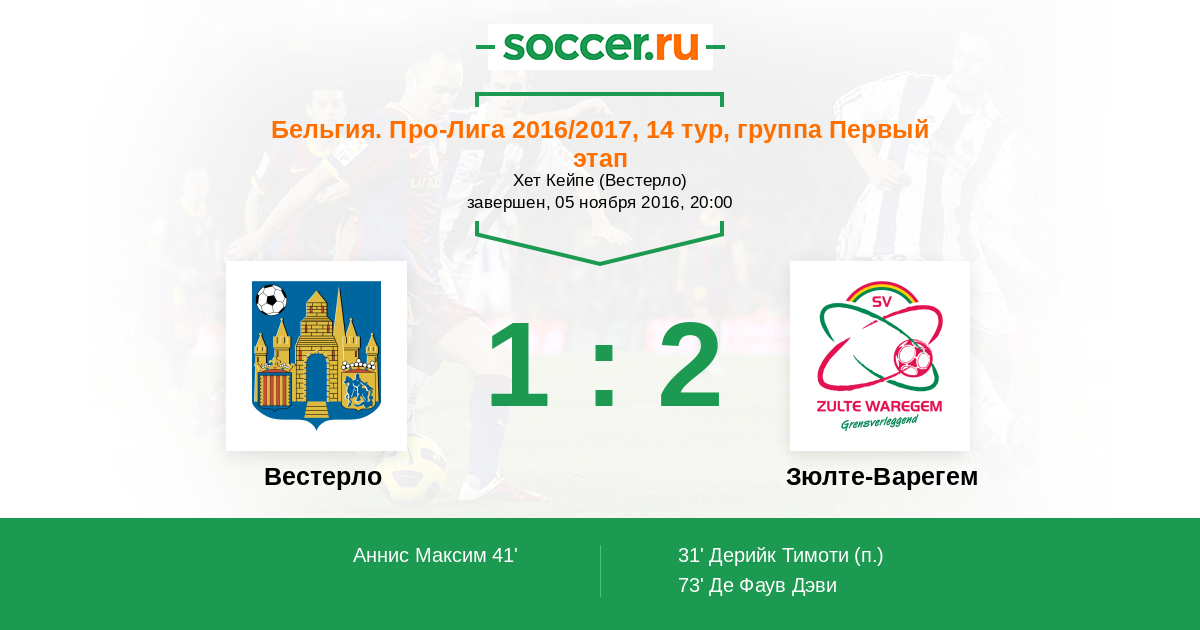 Протокол матча Вестерло против Зюлте-Варегем