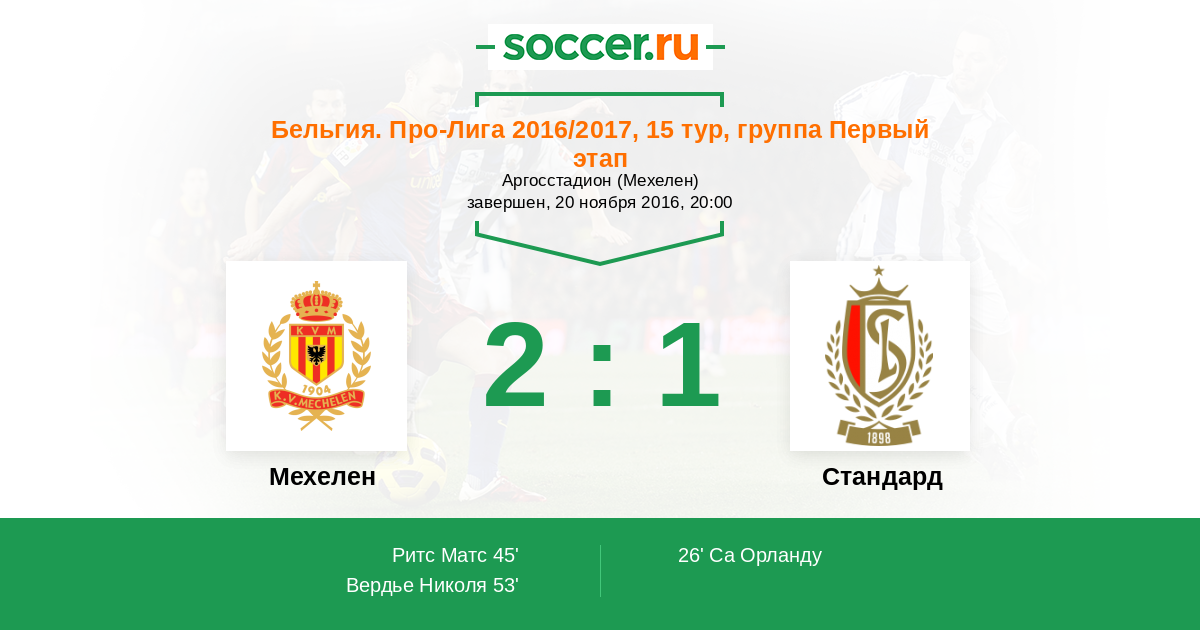 Протокол матча Мехелен против Стандард