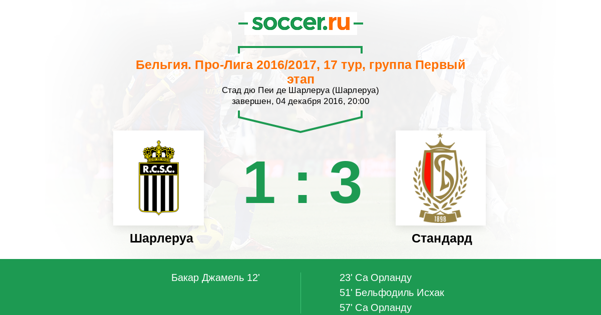Протокол матча Шарлеруа против Стандард
