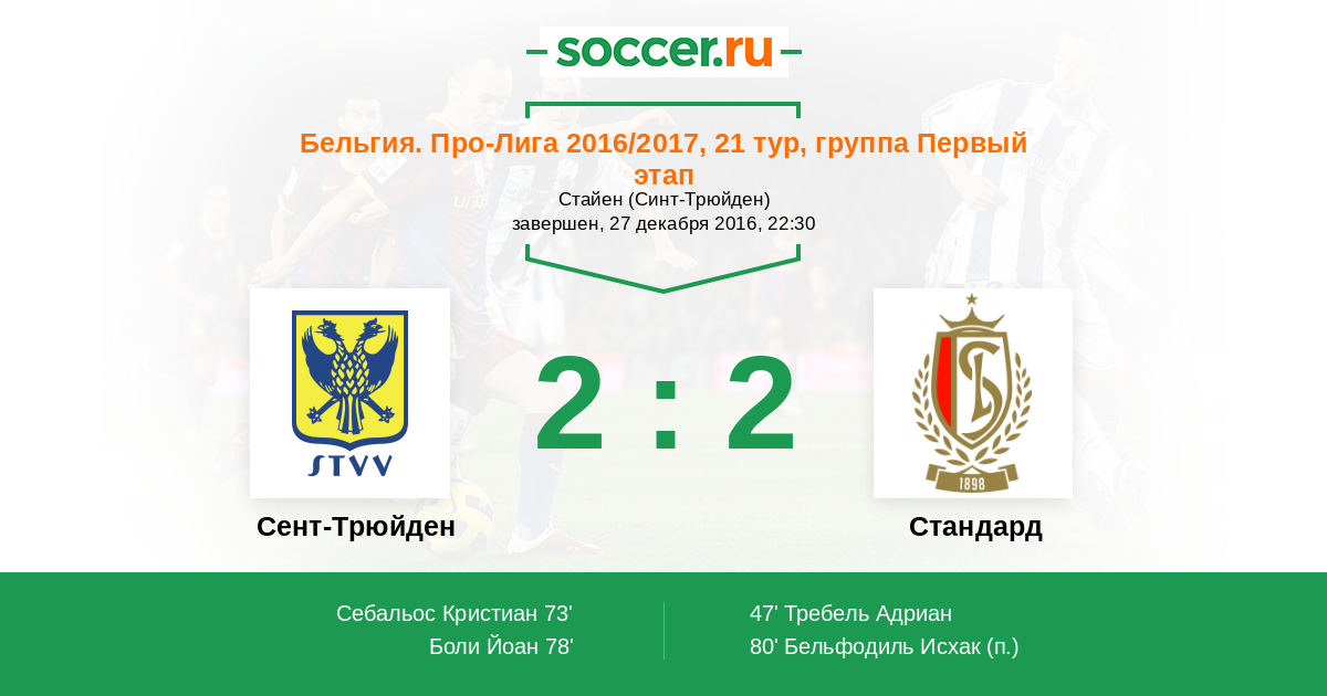 Протокол матча Сент-Трюйден против Стандард