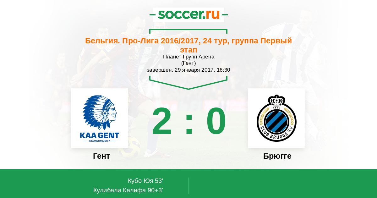 Протокол матча Гент против Брюгге