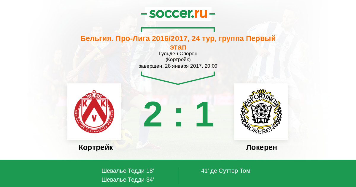 Протокол матча Кортрейк против Локерен