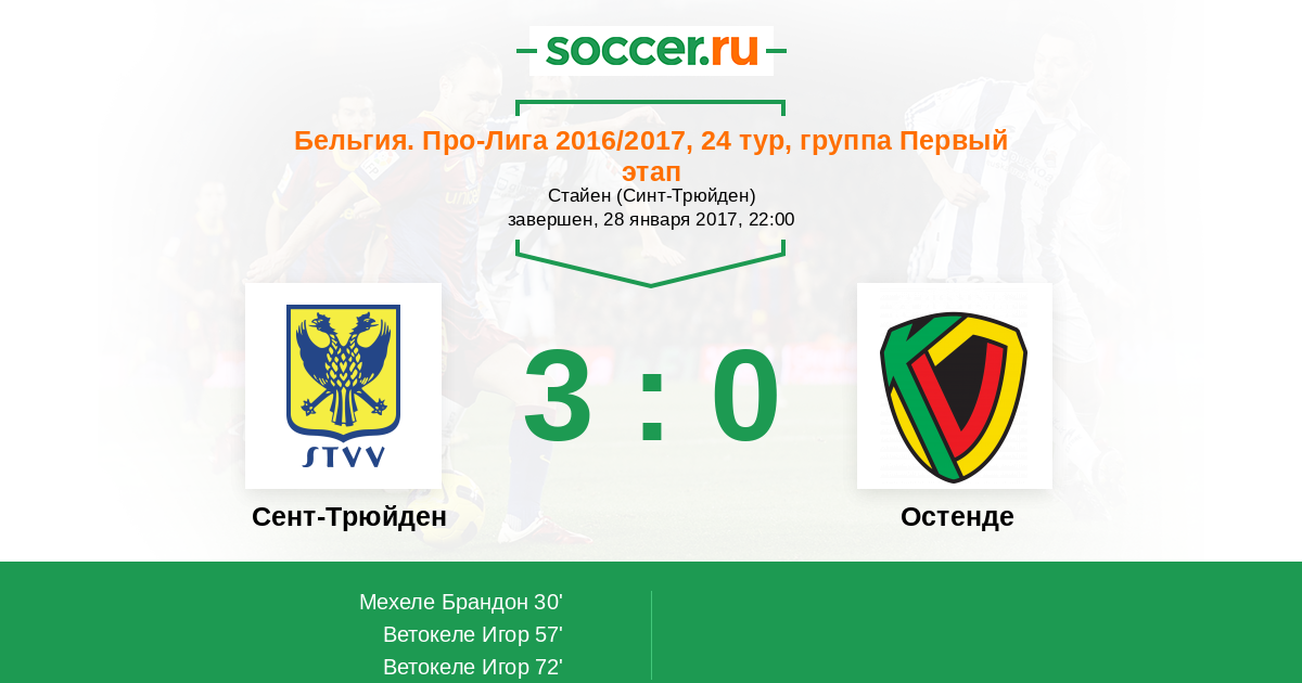 Протокол матча Сент-Трюйден против Остенде