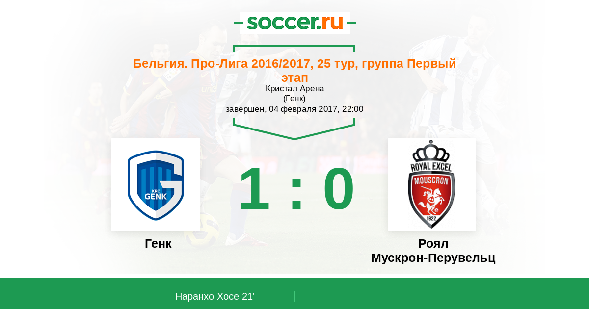 Протокол матча Генк против Роял Мускрон-Перувельц