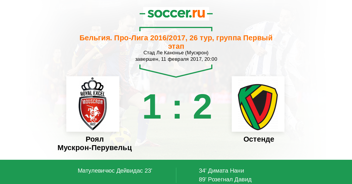 Протокол матча Роял Мускрон-Перувельц против Остенде