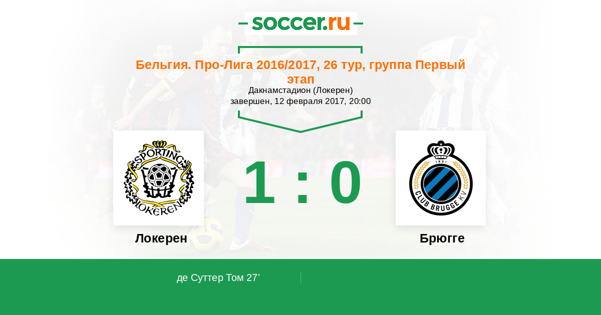 27' (1:0) де Суттер Том (9) (Де Риддер Стив (22))