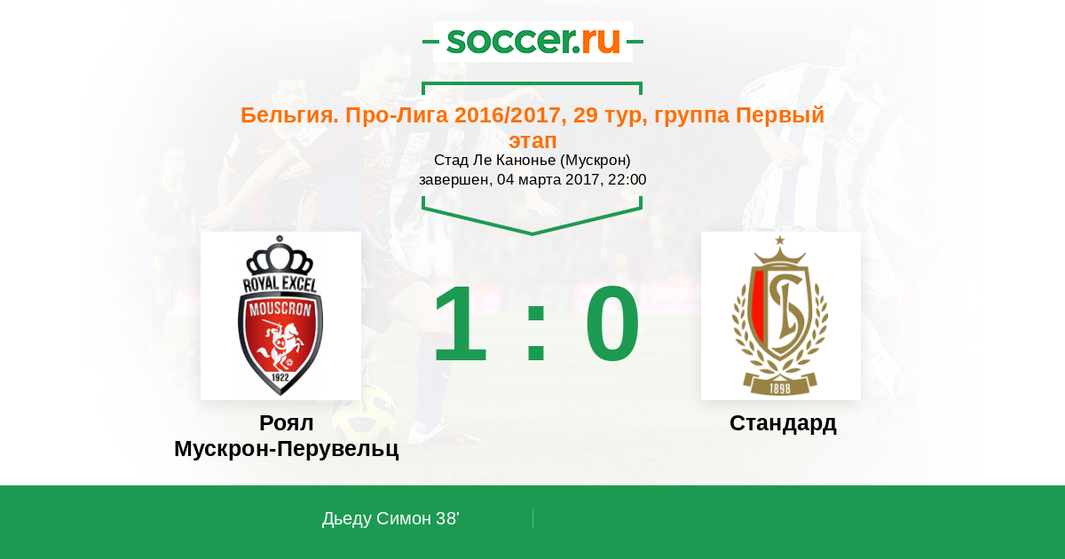 Протокол матча Роял Мускрон-Перувельц против Стандард