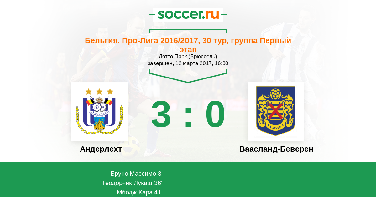 Протокол матча Андерлехт против Ваасланд-Беверен