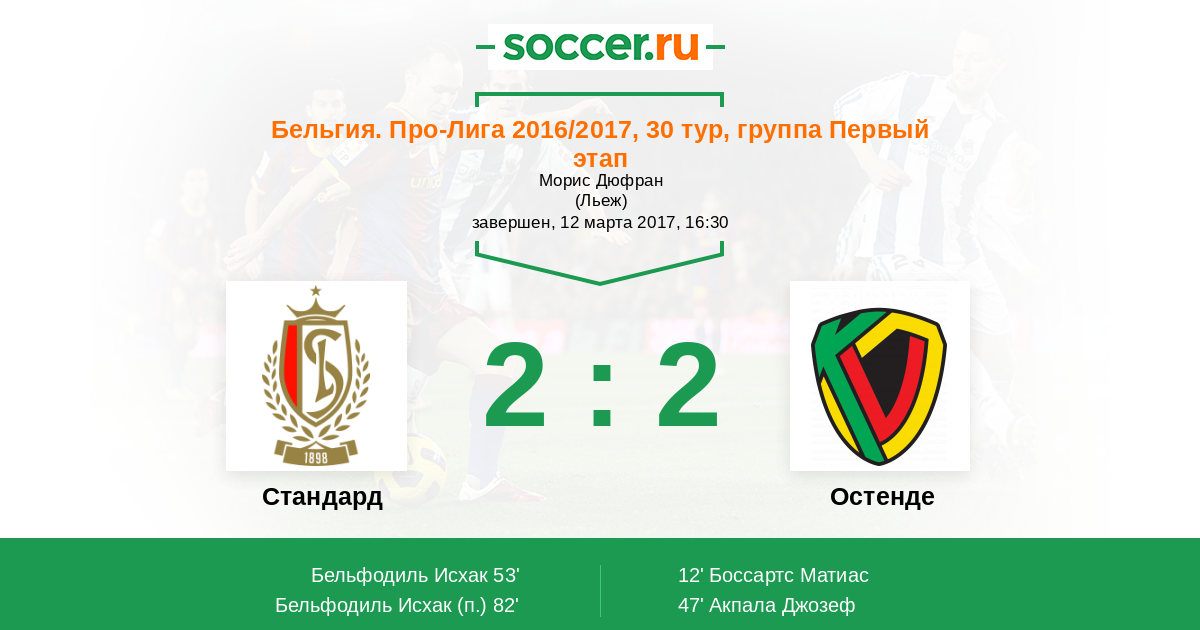 Протокол матча Стандард против Остенде