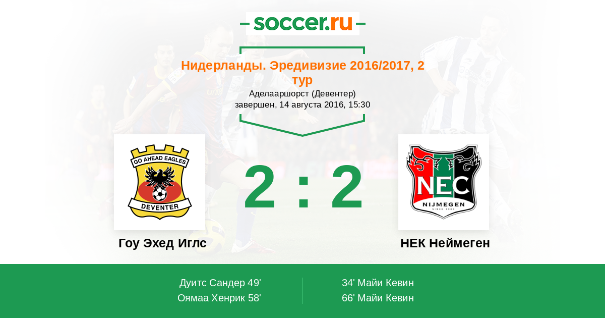 Протокол матча Гоу Эхед Иглс против НЕК Неймеген