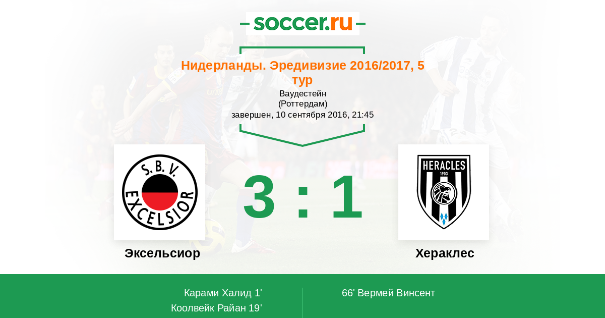 Протокол матча Эксельсиор против Хераклес