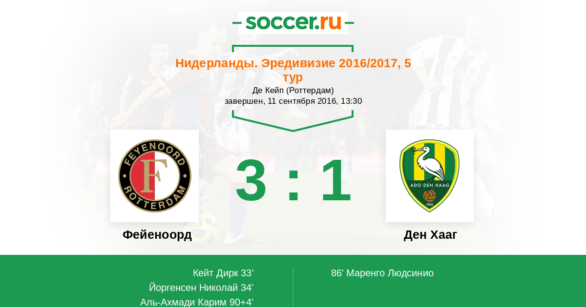 Протокол матча Фейеноорд против Ден Хааг