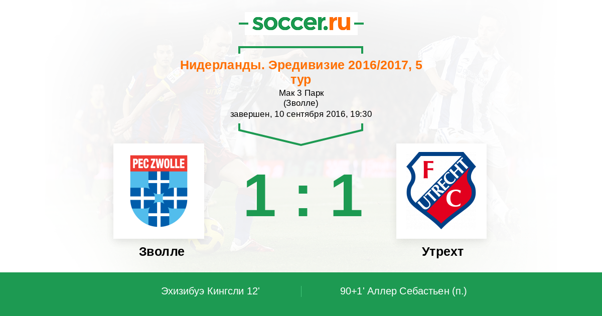 Протокол матча Зволле против Утрехт