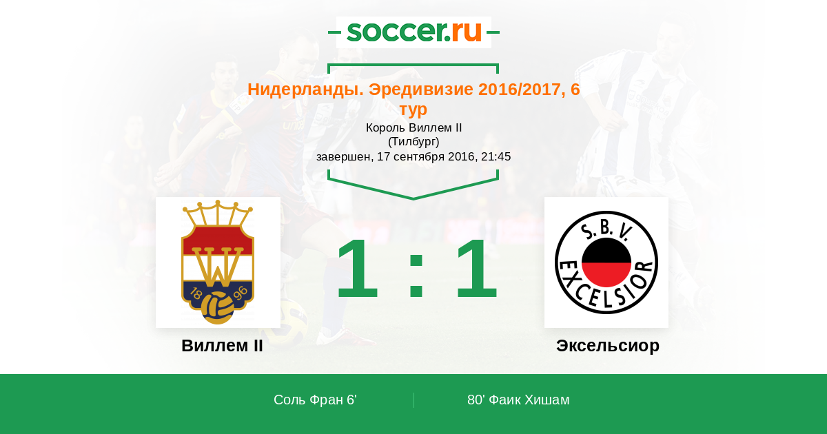Протокол матча Виллем II против Эксельсиор