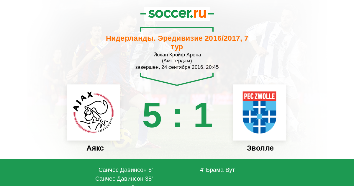 Протокол матча Аякс против Зволле